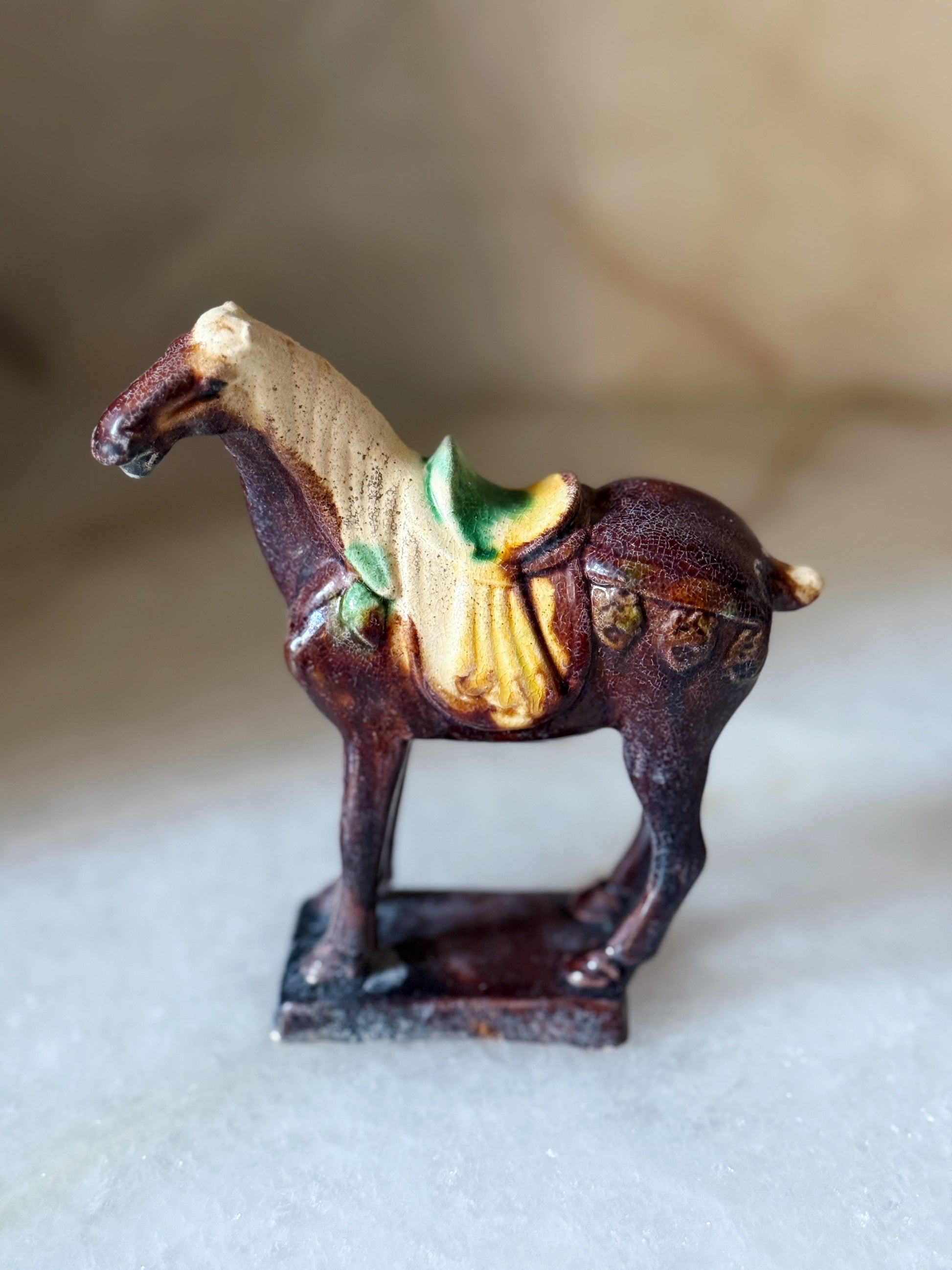 Trio of Glazed Ceramic Horse Figurines