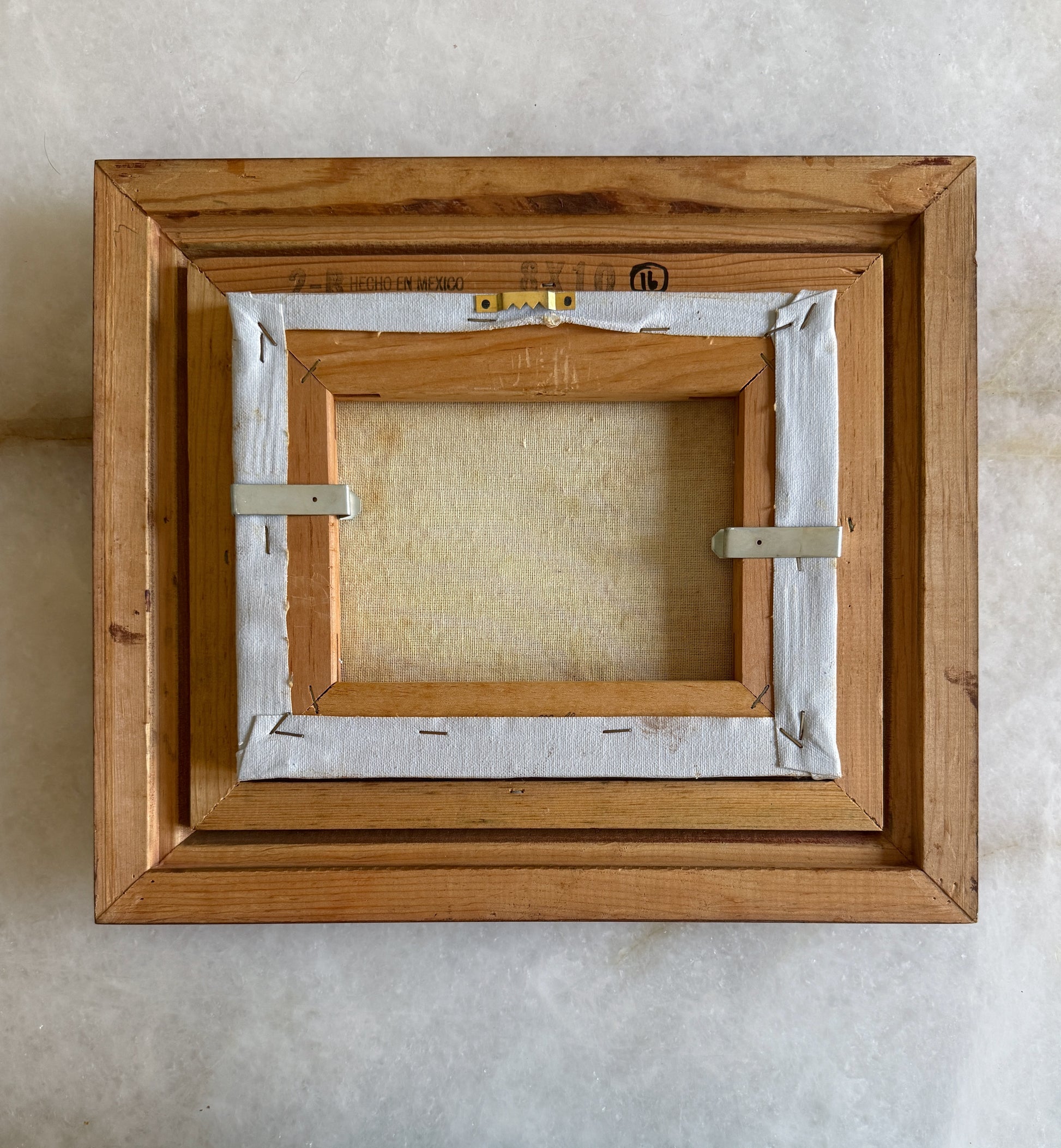 Very good vintage condition, wear due to age. Painting is in excellent condition, the frame has light wear and light staining on linen as seen in last pic.
